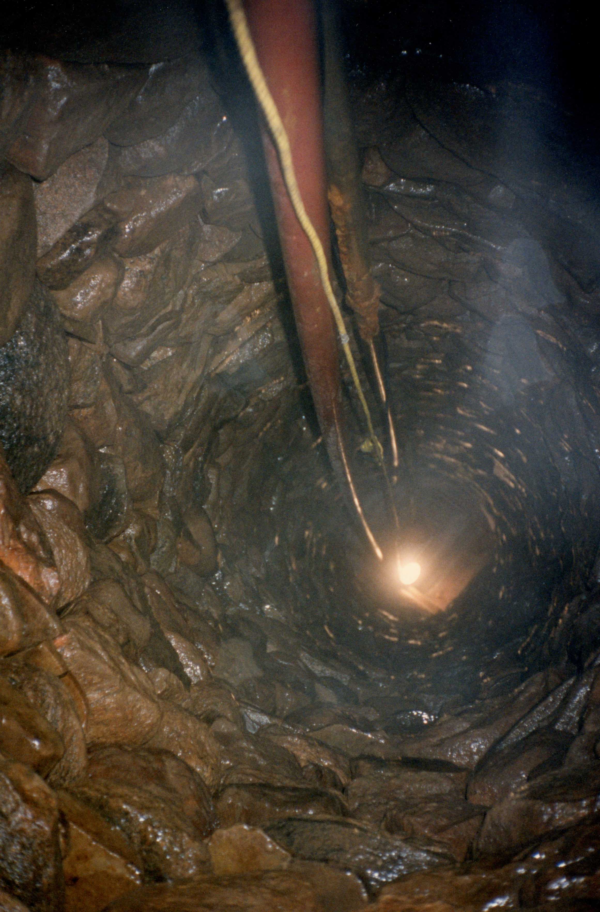 The well is about 35 feet deep, and during the restoration careful work was done on the interior well walls.