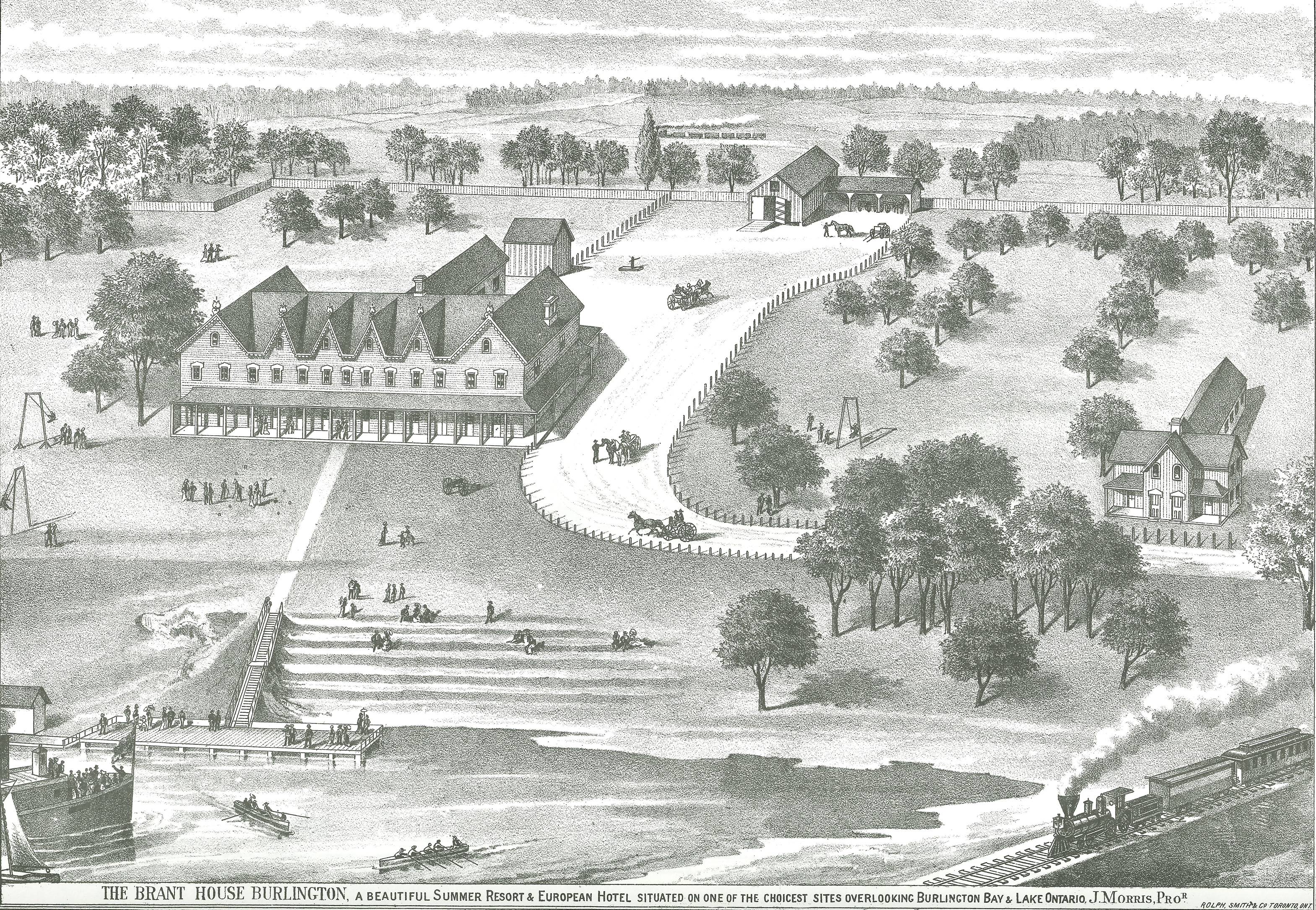 By 1877, under the ownership of J. Morris of Hamilton, guests of the Brant House would have enjoyed many activities, including croquet and water sports.