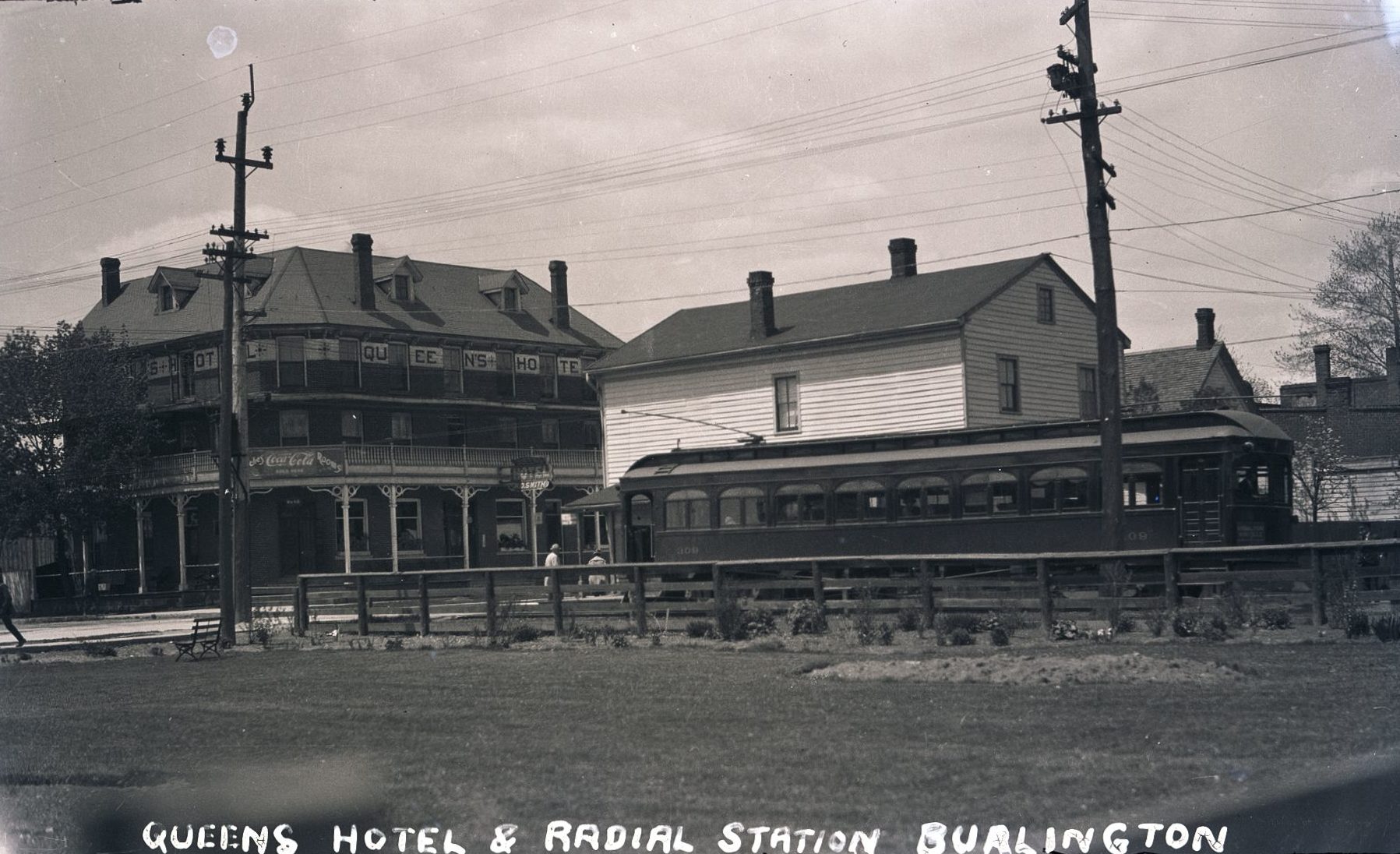 The Queen’s Hotel was owned and operated by R. D. Smith from 1918 to 1936. The Hamilton Radial Electric Railway stop #25, later #125 and #307, was beside the Queen’s Hotel from 1896-1921, where Elgin Street is today!